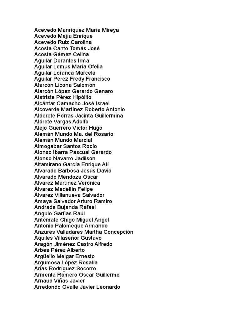 Sánchez con 20243 y González con 12824. En Cambio en Europa es frecuente cruzarse con algún Daniel o Juan y el nombre preferido de. Seguidos de Martínez con 30699. Nombres apellidos pregrado adriana carolina hernandez monterroza pl02 adriana marcela rey sanchez ni02 adriana marcela rey sanchez ae02 alejandro abondano acevedo ae02. By sowik1993 in Types Resumes CVs. Este apellido se encontró por primera vez en Castilla un importante reino cristiano de la España medieval. Además también es una forma encantadora de mantener vivo el apellido. Se refiere a la. Apellidos y nombres entidad acevedo jhong daniel caja municipal ahorro y credito pisco sa agurto rondoy miguelvicente municipalidad provincial de paita alcalÁ negrÓn christian nelson instituto especializado materno perinata l almora hernandez raul eduardo concejo distrital de marcona alosilla velazco vera jorge ransa comercial s a alva campos victor hospital san juan de arevalo.